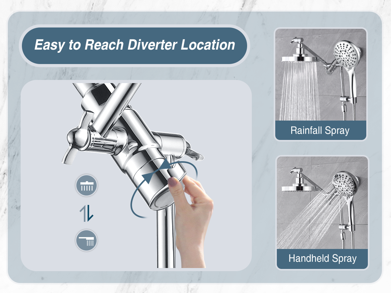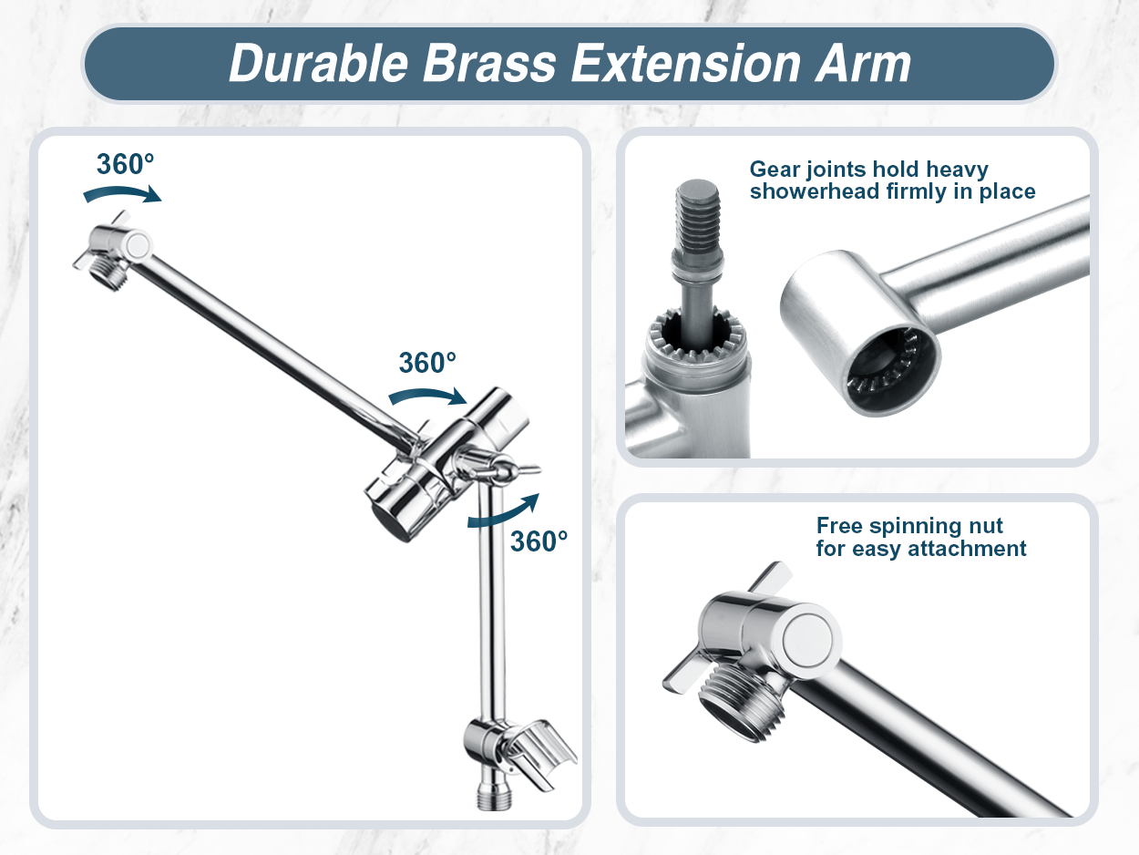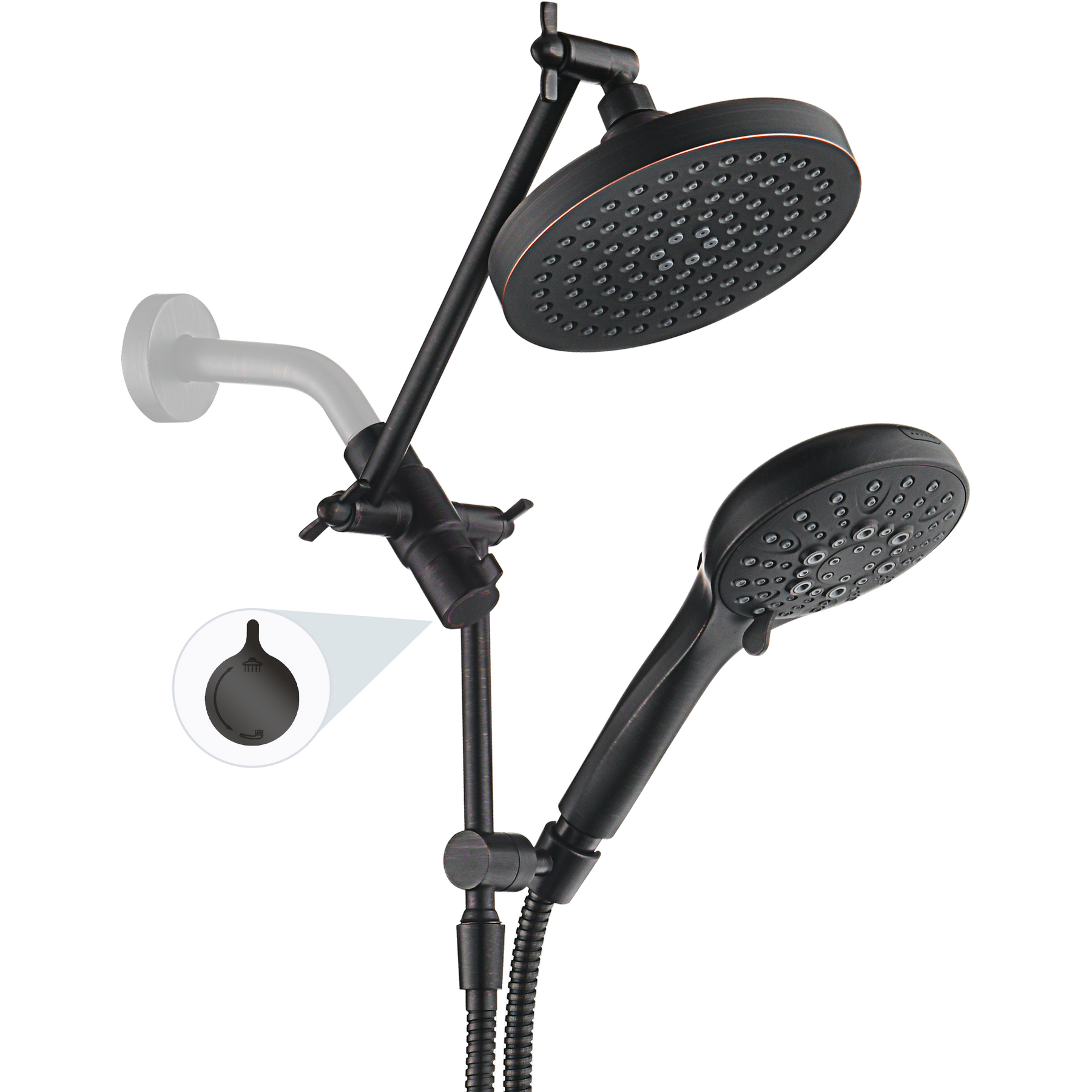 Dual Shower Head with Adjustable Extension Arm, 3-Way Diverter and Hose