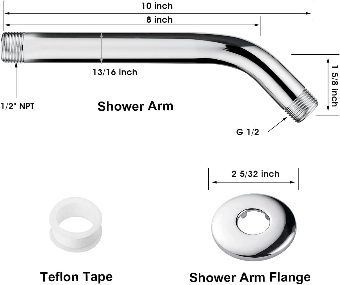BRIGHT SHOWERS 10 Inch Solid Brass Shower Head Extension Arm, Wall Mounted Shower Pipe Arm
