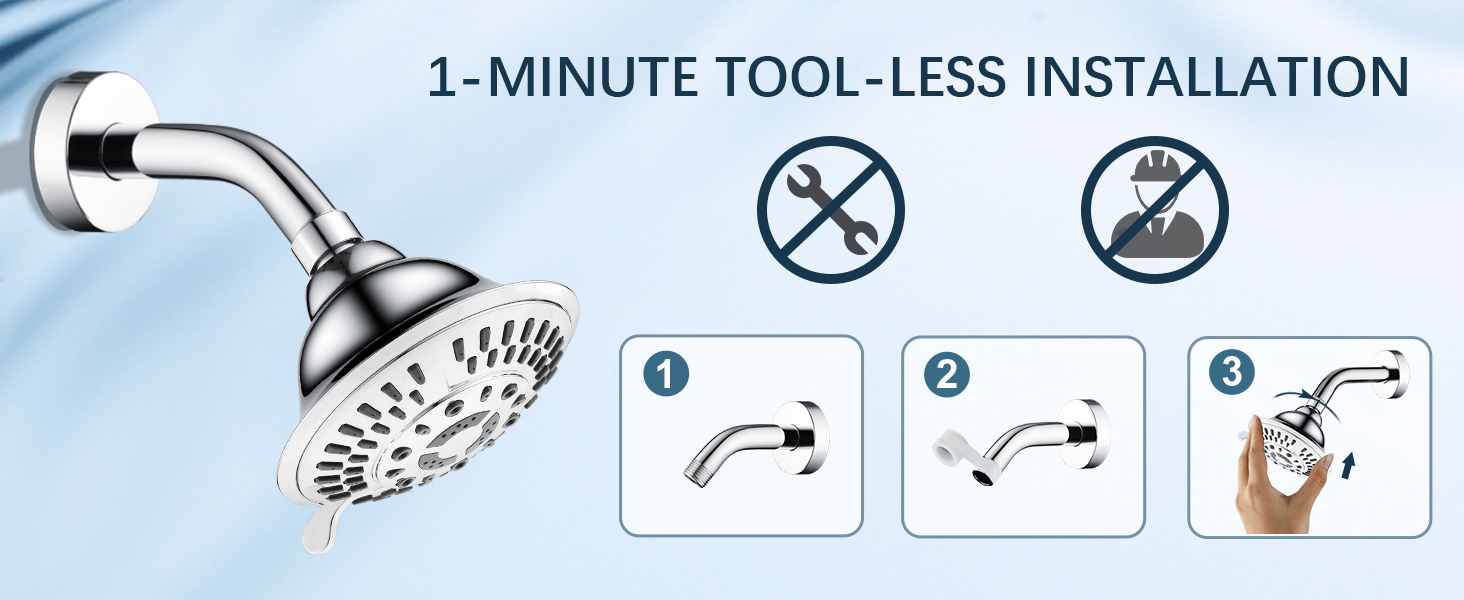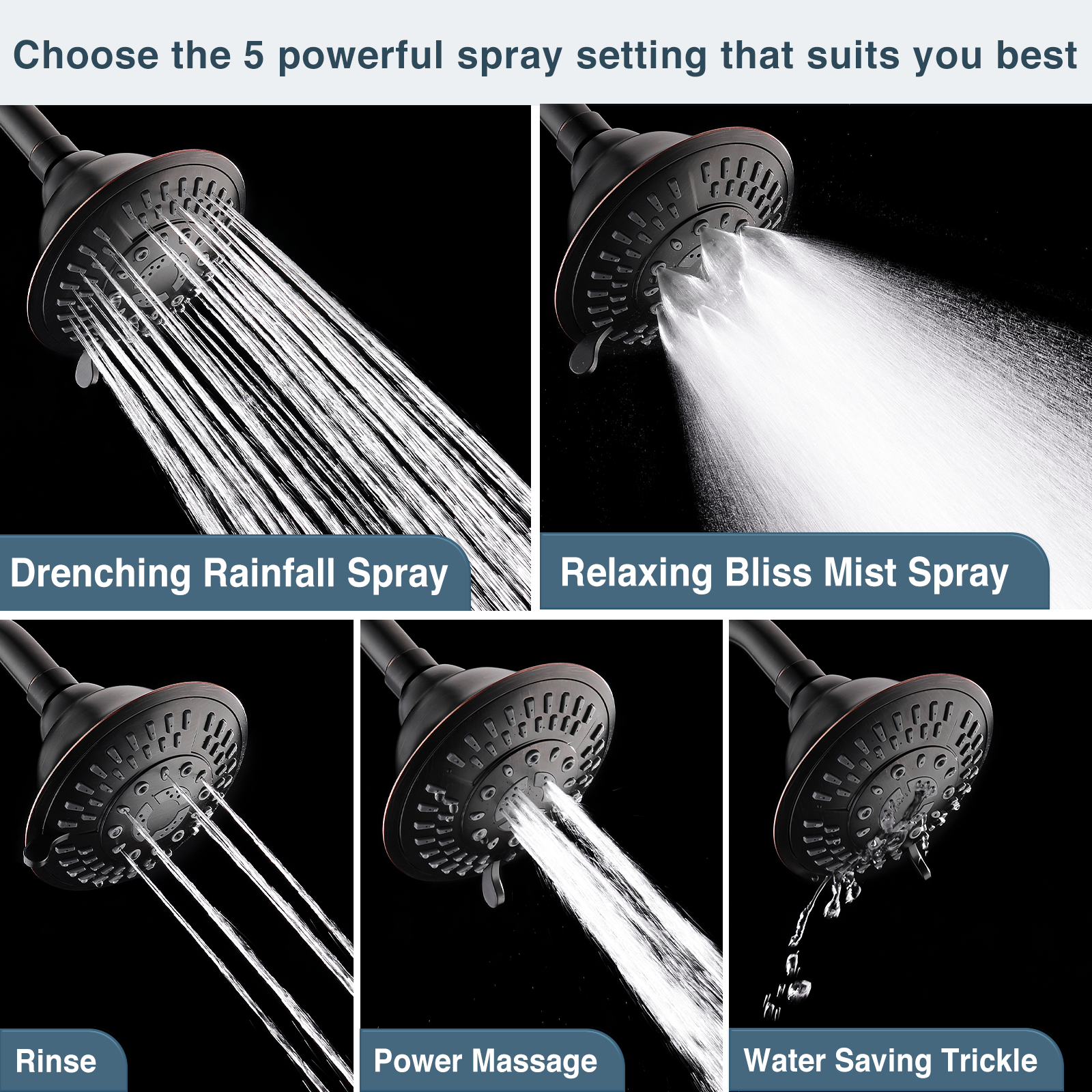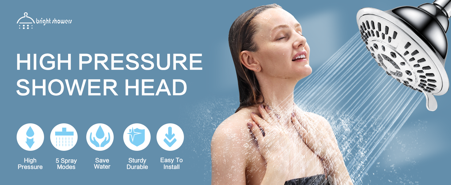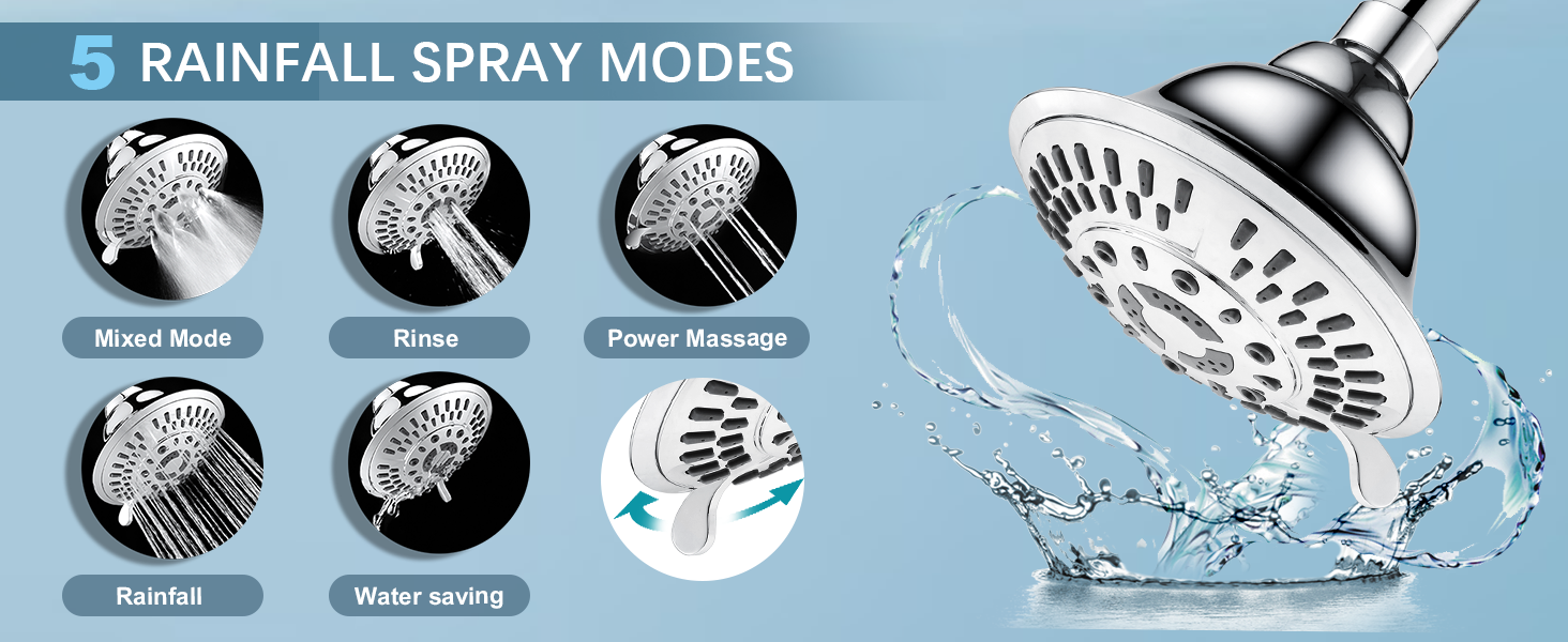 High Pressure 5-Spray Fixed Shower Head, Angle Adjustable - brightshowers