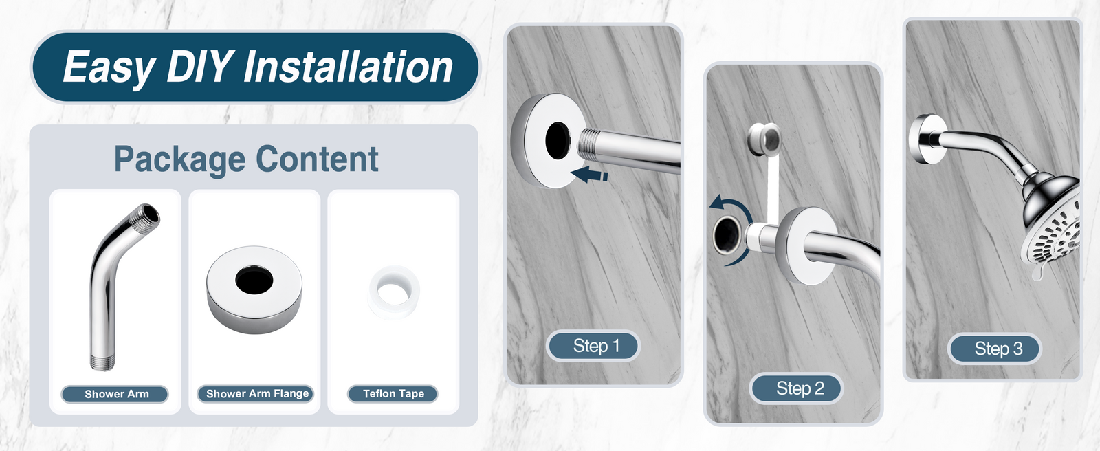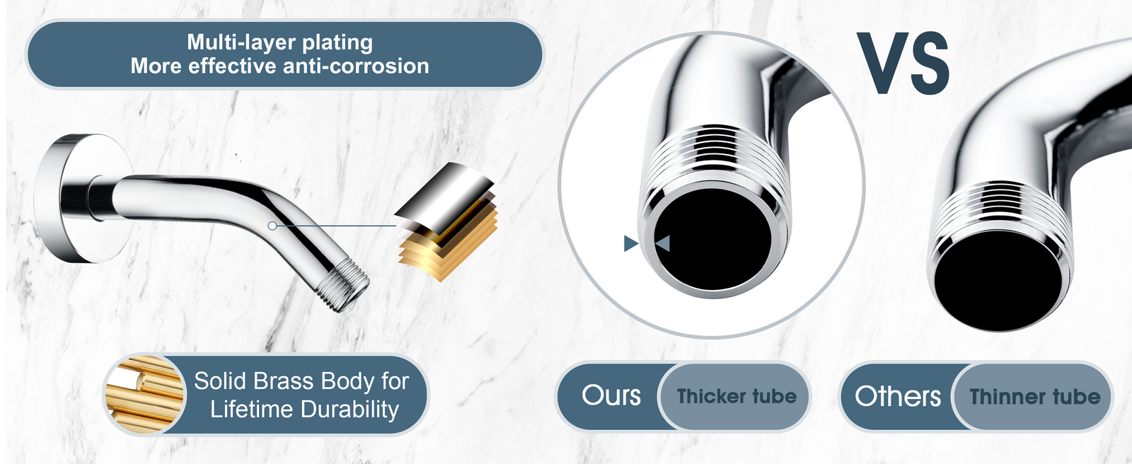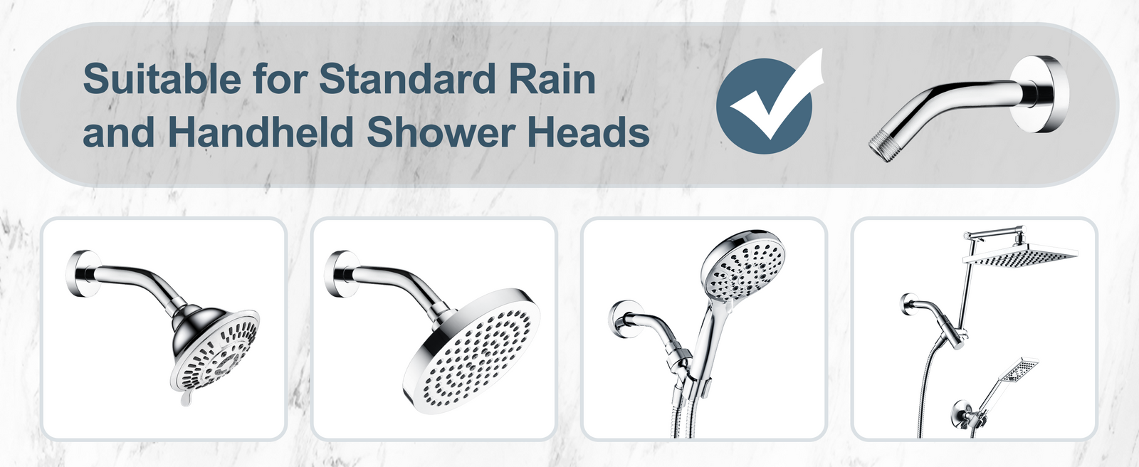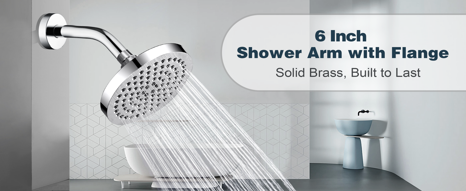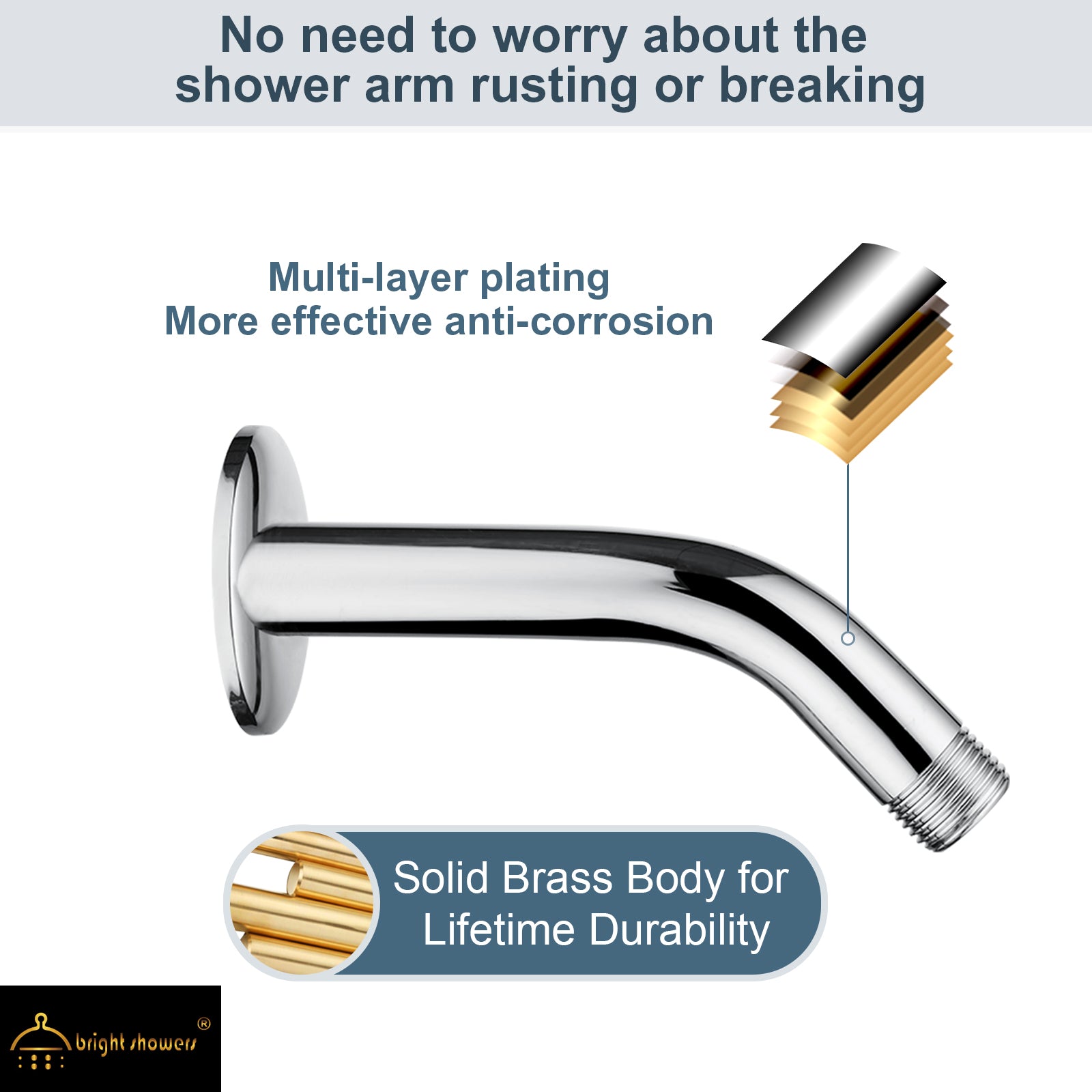 6 Inch Brass Shower Arm for Wall Mount Fixed and Handheld Shower Head, UPC:855738008794