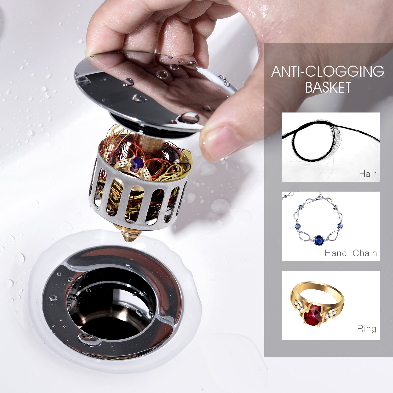 Bathroom Sink Drain with Overflow Pop-Up Drain Stopper for Vessel Sink Lavatory