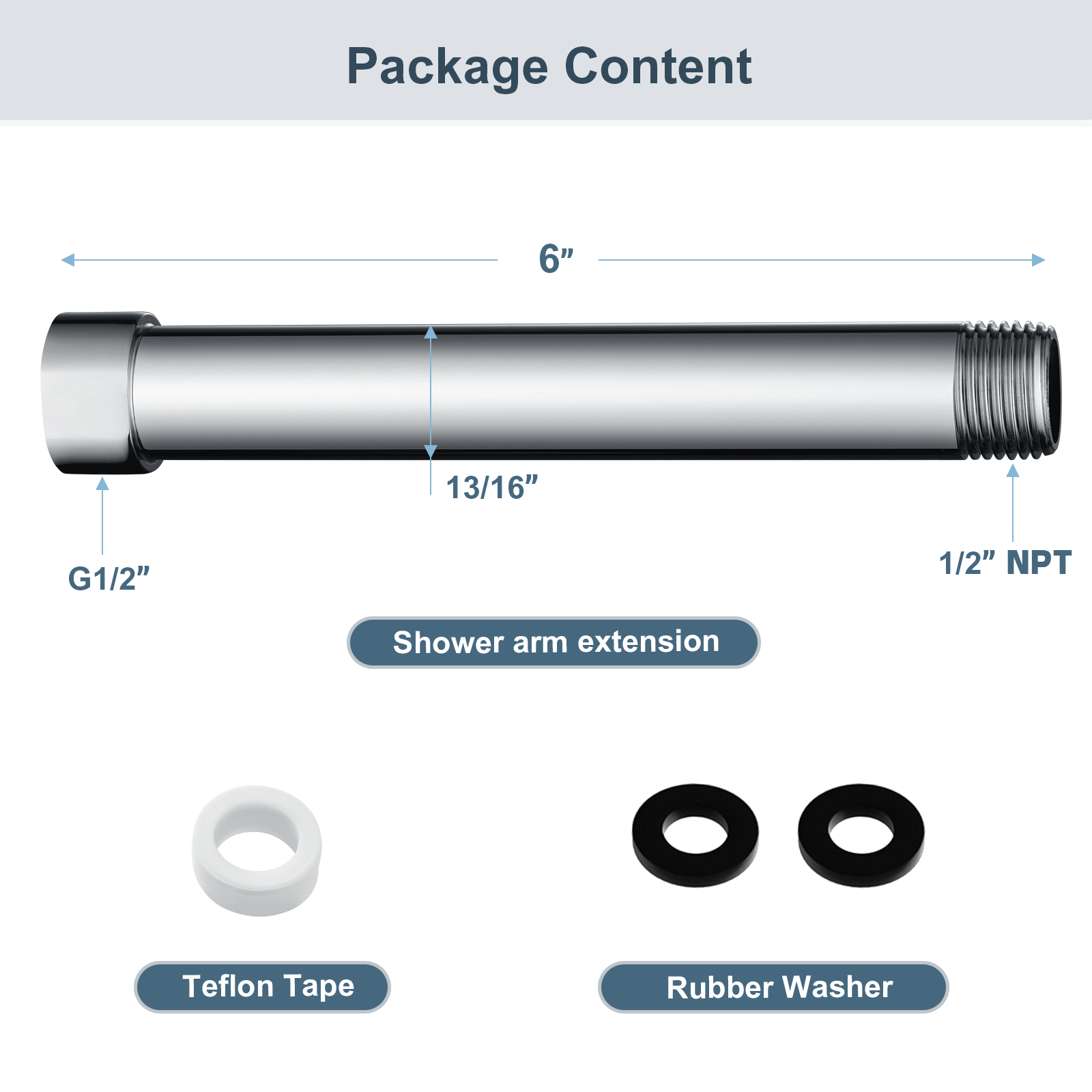 Shower Arm Extender for Rain and Handheld Shower Head, 4 & 6 Inch
